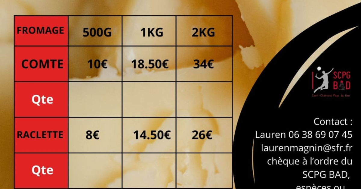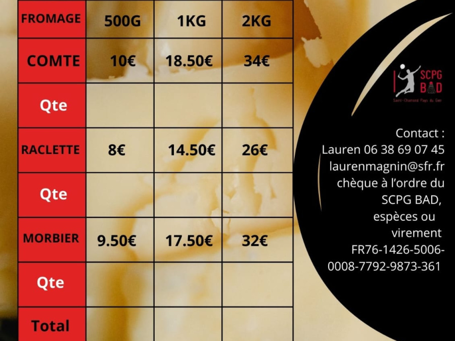 Le SCPG BAD, en partenariat avec la Fromagerie Fromabert, vous propose une délicieuse vente de fromages 🥰